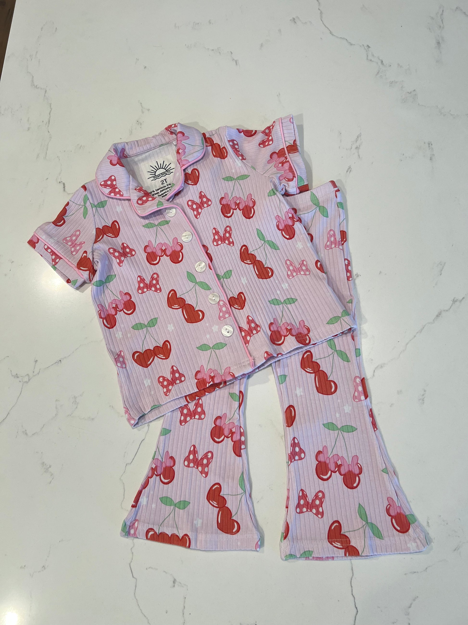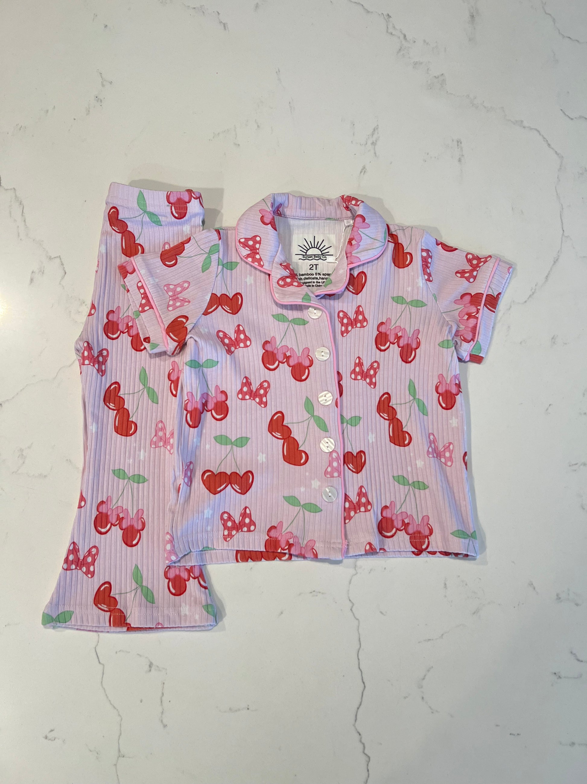 A buttery-soft ribbed bamboo button-down covered in adorable mouse-ear cherries. Comfy, cool, and cute enough for any day.